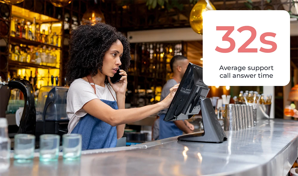 Take orders, split bills and process payments easily with our handheld POS device. Plus with one support team across EPOS and payments, help is available from experts in as little as 32 seconds.
